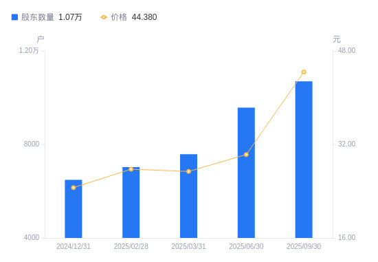 近一年(2024年9月30日至2025年9月30日),上海沿浦A股股东户数从7116户,增加至1.07万户,增幅50.34%,区间股价上涨126.46%。