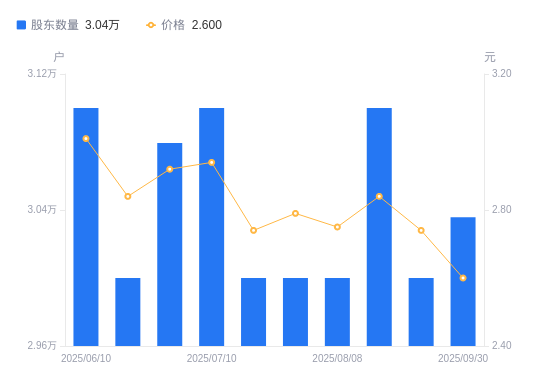 近一年(2024年9月30日至2025年9月30日),兴源环境A股股东户数从2.89万户,增加至3.04万户,增幅5.05%,区间股价上涨52.05%。