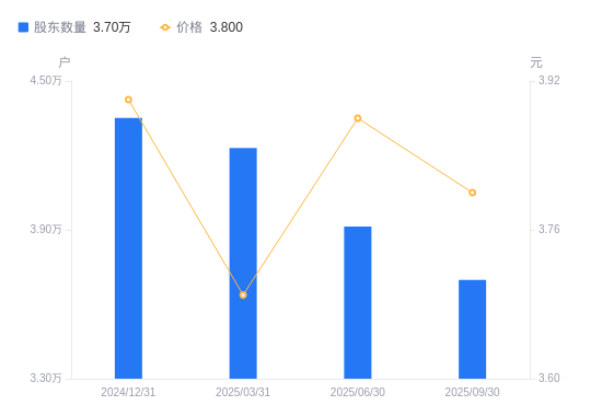 近一年(2024年9月30日至2025年9月30日),华神科技A股股东户数从3.97万户,减低至3.7万户,降幅6.91%,区间股价上涨1.60%。