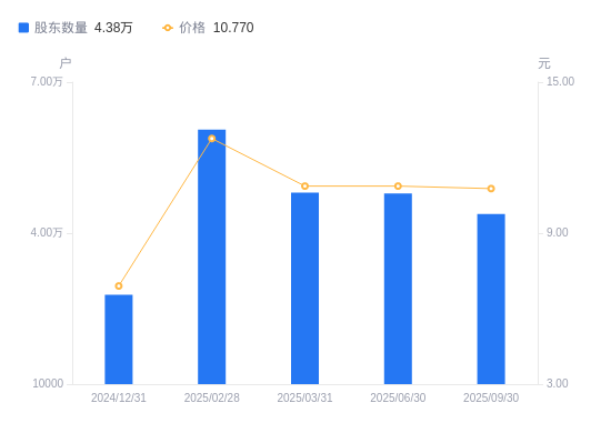 近一年(2024年9月30日至2025年9月30日),冀东装备A股股东户数从3.1万户,增加至4.38万户,增幅41.31%,区间股价上涨58.38%。