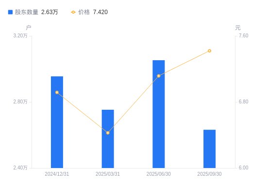 近一年(2024年9月30日至2025年9月30日),东方创业A股股东户数从2.59万户,增加至2.63万户,增幅1.48%,区间股价上涨21.18%。