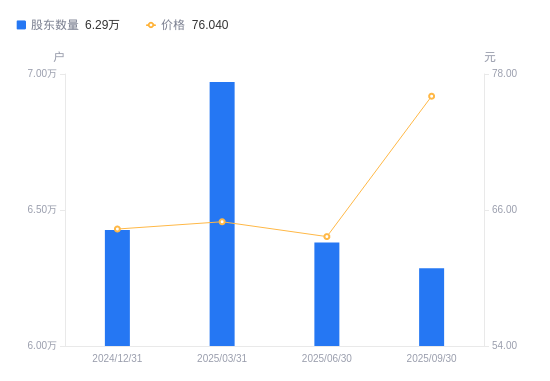 近一年(2024年9月30日至2025年9月30日),柯力传感A股股东户数从3.57万户,增加至6.29万户,增幅76.04%,区间股价上涨160.48%。