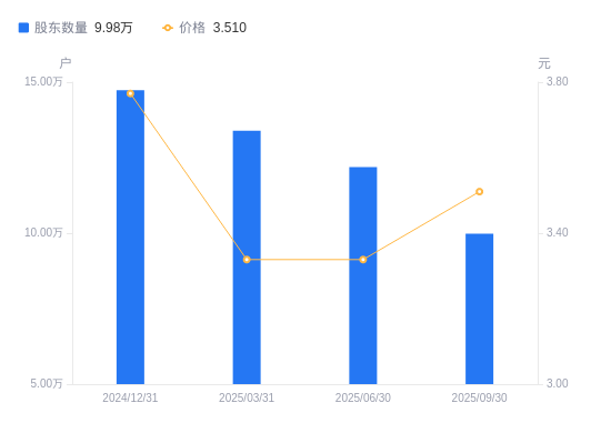 10月30日消息,数据显示,截至2025年9月30日,渤海租赁A股股东总户数为9.98万户,较上期(2025年6月30日)减少2.21万户,降幅18.11%。公司最新A股总股本为61.85亿股,其中流通A股53.93亿股,户均持有流通A股数量为5.4万股,较上期增加9783.45股,增幅22.11%;户均持流通A股市值18.96万元,较上期增加4.23万元,增幅28.71%。