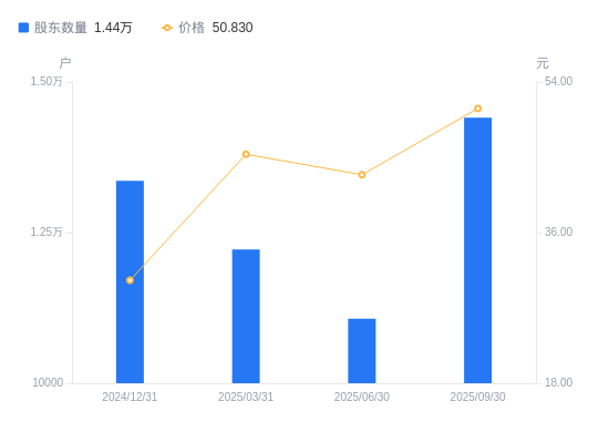 近一年(2024年9月30日至2025年9月30日),税友股份A股股东户数从1.75万户,减低至1.44万户,降幅17.89%,区间股价上涨91.52%。