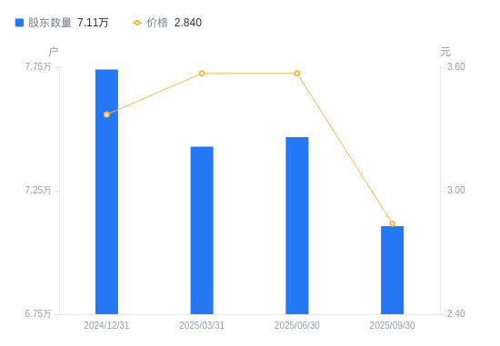 近一年(2024年9月30日至2025年9月30日),瑞贝卡A股股东户数从5.28万户,增加至7.11万户,增幅34.62%,区间股价上涨9.65%。