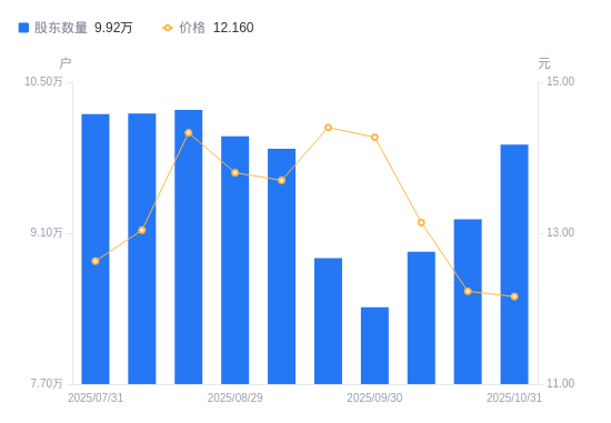 近一年(2024年10月31日至2025年10月31日),神州泰岳A股股东户数从9.45万户,增加至9.92万户,增幅5.02%,区间股价下跌5.07%。