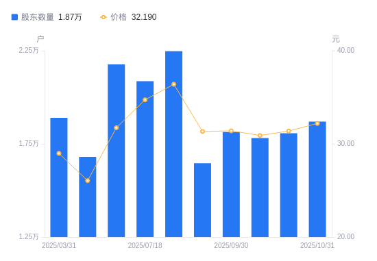 近一年(2024年11月29日至2025年10月31日),拓新药业A股股东户数从1.8万户,增加至1.87万户,增幅3.64%,区间股价下跌0.09%。