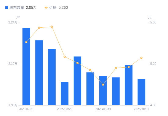 近一年(2024年10月31日至2025年10月31日),中建环能A股股东户数从2.88万户,减低至2.05万户,降幅28.78%,区间股价下跌12.54%。