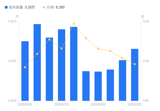 近一年(2024年12月20日至2025年10月31日),金能科技A股股东户数从3.41万户,减低至3.26万户,降幅4.15%,区间股价上涨15.55%。