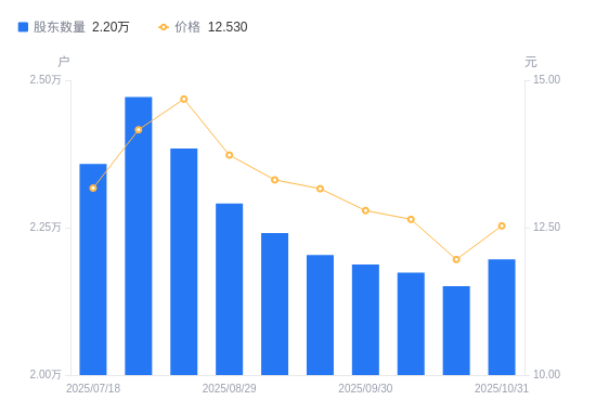 近一年(2024年11月8日至2025年10月31日),火星人A股股东户数从2.41万户,减低至2.2万户,降幅8.98%,区间股价下跌18.05%。