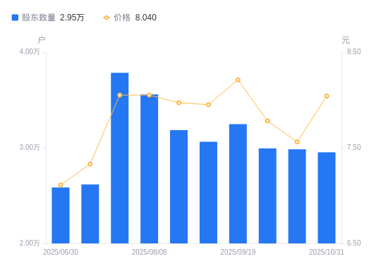 近一年(2024年10月31日至2025年10月31日),长荣股份A股股东户数从2.05万户,增加至2.95万户,增幅43.86%,区间股价上涨44.34%。