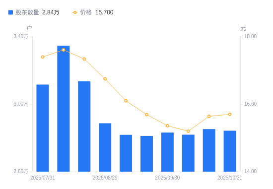 近一年(2024年10月31日至2025年10月31日),冠昊生物A股股东户数从3.05万户,减低至2.84万户,降幅6.73%,区间股价上涨16.99%。