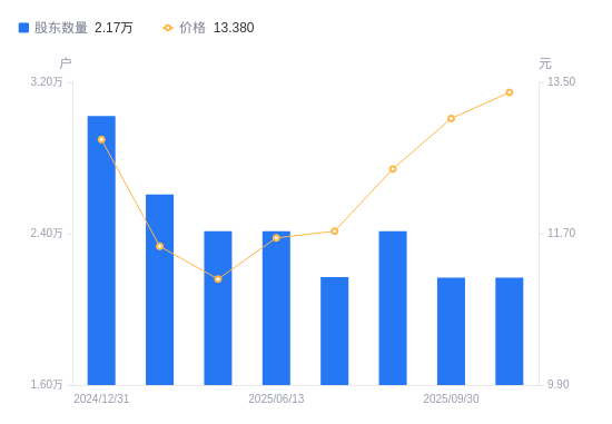 近一年(2024年12月31日至2025年10月31日),新华百货A股股东户数从3.02万户,减低至2.17万户,降幅28.28%,区间股价下跌0.52%。