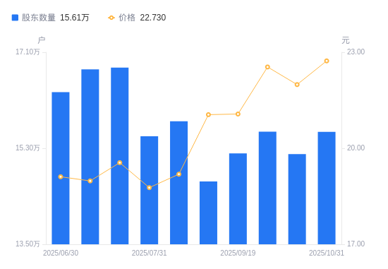 近一年(2024年10月31日至2025年10月31日),有研新材A股股东户数从8.9万户,增加至15.61万户,增幅75.42%,区间股价上涨106.06%。