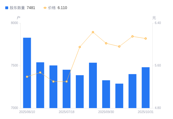 近一年(2024年10月31日至2025年10月20日),*ST天龙A股股东户数从9070户,减低至7400户,降幅18.41%,区间股价下跌0.16%。