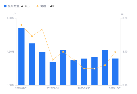 近一年(2024年11月30日至2025年10月31日),华仁药业A股股东户数从4.5万户,减低至4.06万户,降幅9.78%,区间股价下跌12.14%。