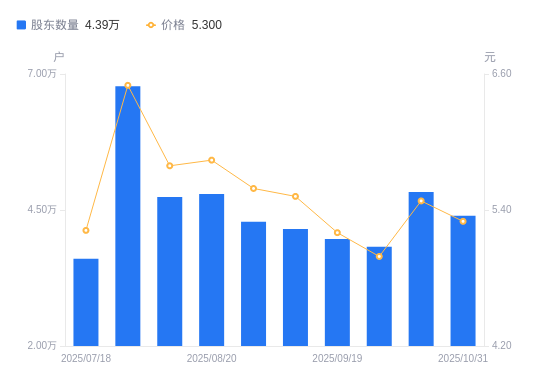 11月7日消息,数据显示,截至2025年10月31日,罗欣药业(维权)A股股东总户数为4.39万户,较上期(2025年10月20日)减少4377户,降幅9.06%。公司最新A股总股本为10.88亿股,其中流通A股10.86亿股,户均持有流通A股数量为2.47万股,较上期增加2240.09股,增幅9.96%;户均持流通A股市值13.1万元,较上期增加7825.86元,增幅6.35%。
