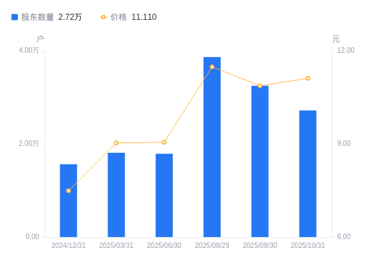 近一年(2024年12月31日至2025年10月31日),法兰泰克A股股东户数从1.56万户,增加至2.72万户,增幅73.87%,区间股价上涨44.85%。