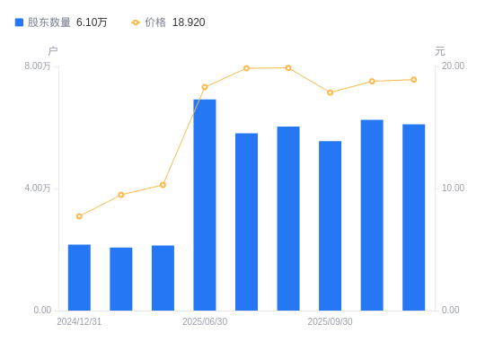 近一年(2024年12月31日至2025年11月10日),利民股份A股股东户数从2.16万户,增加至6.1万户,增幅182.60%,区间股价上涨138.50%。