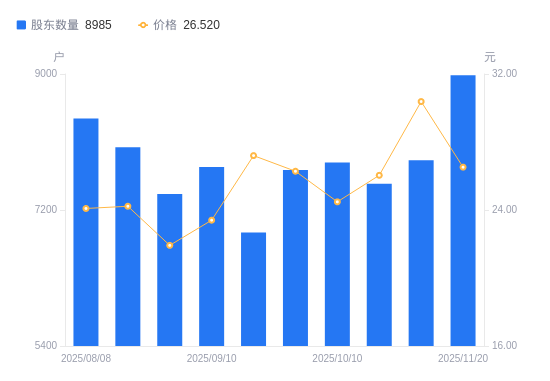 近一年(2024年11月20日至2025年11月20日),采纳股份A股股东户数从1.08万户,减低至8985户,降幅16.62%,区间股价上涨10.50%。