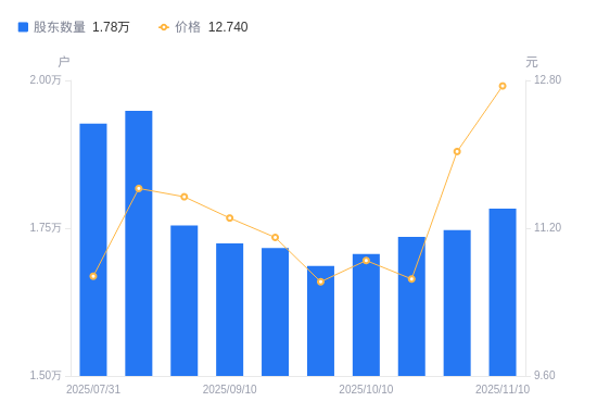 近一年(2024年11月10日至2025年11月10日),凯发电气A股股东户数从2.44万户,减低至1.78万户,降幅26.89%,区间股价上涨6.42%。