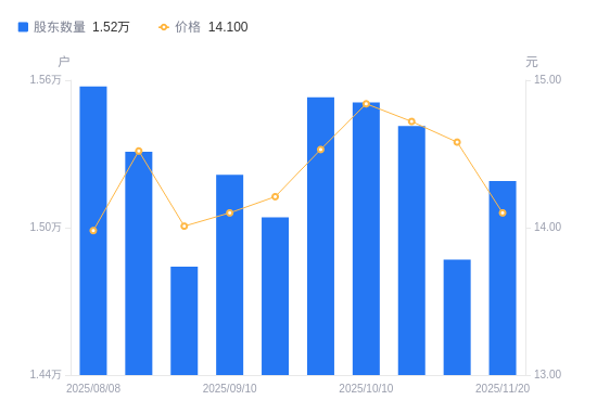 近一年(2024年12月10日至2025年11月20日),友讯达A股股东户数从1.69万户,减低至1.52万户,降幅9.94%,区间股价下跌6.75%。