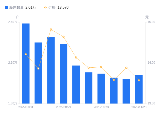近一年(2024年11月20日至2025年11月20日),戴维医疗A股股东户数从1.78万户,增加至2.01万户,增幅12.92%,区间股价上涨13.06%。