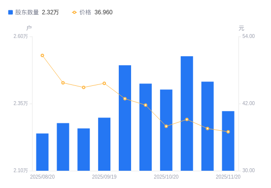 近一年(2024年11月20日至2025年11月20日),华辰装备A股股东户数从2.01万户,增加至2.32万户,增幅15.40%,区间股价上涨58.02%。