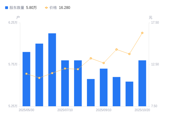近一年(2024年11月20日至2025年11月20日),晋控煤业A股股东户数5.3万户保持不变,区间股价上涨7.52%。