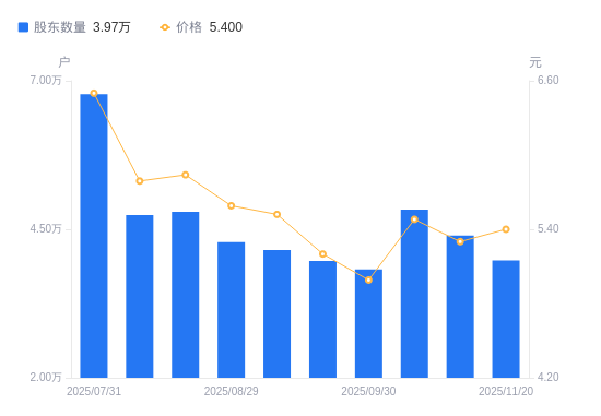 11月25日消息,数据显示,截至2025年11月20日,罗欣药业(维权)A股股东总户数为3.97万户,较上期(2025年10月31日)减少4188户,降幅9.53%。公司最新A股总股本为10.88亿股,其中流通A股10.86亿股,户均持有流通A股数量为2.73万股,较上期增加2605.33股,增幅10.54%;户均持流通A股市值14.76万元,较上期增加1.65万元,增幅12.62%。
