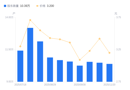 近一年(2024年11月20日至2025年11月20日),誉衡药业A股股东户数从9.4万户,增加至10.39万户,增幅10.53%,区间股价上涨28.51%。