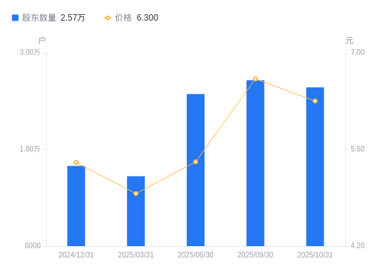 近一年(2024年12月31日至2025年10月31日),有棵树A股股东户数从1.59万户,增加至2.57万户,增幅61.10%,区间股价上涨13.92%。