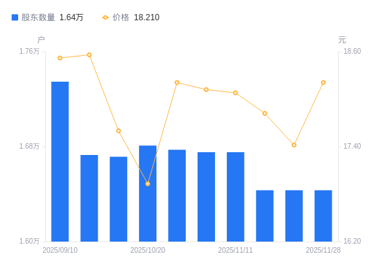 近一年(2024年12月31日至2025年11月28日),川网传媒A股股东户数从1.51万户,增加至1.64万户,增幅8.98%,区间股价上涨25.03%。