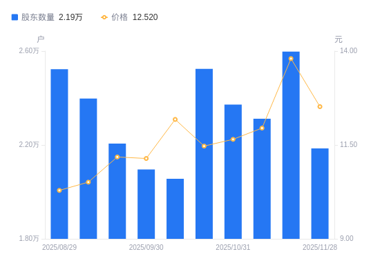 近一年(2024年12月20日至2025年11月28日),联发股份A股股东户数从1.97万户,增加至2.19万户,增幅10.68%,区间股价上涨60.93%。