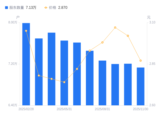 近一年(2024年11月30日至2025年11月30日),金融街A股股东户数从8.69万户,减低至7.13万户,降幅17.94%,区间股价下跌28.25%。