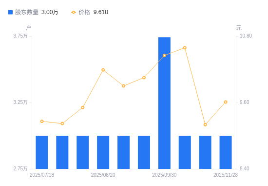 近一年(2024年11月29日至2025年11月28日),茂硕电源A股股东户数3万户保持不变,区间股价上涨9.70%。