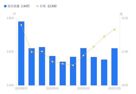 近一年(2024年11月29日至2025年11月28日),达嘉维康A股股东户数从1.57万户,增加至1.64万户,增幅4.26%,区间股价上涨8.20%。