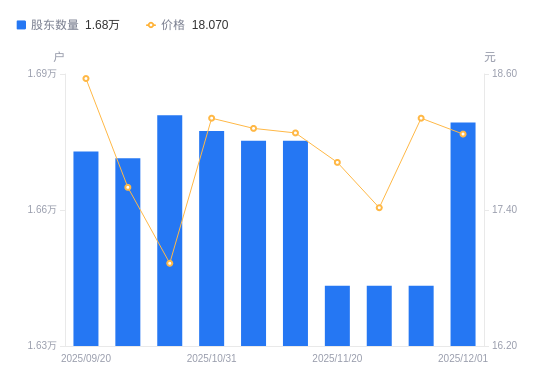 近一年(2024年12月31日至2025年12月1日),川网传媒A股股东户数从1.51万户,增加至1.68万户,增幅11.37%,区间股价上涨24.06%。