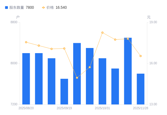 近一年(2024年11月29日至2025年11月28日),中胤时尚A股股东户数从1.15万户,减低至7800户,降幅32.17%,区间股价上涨25.21%。