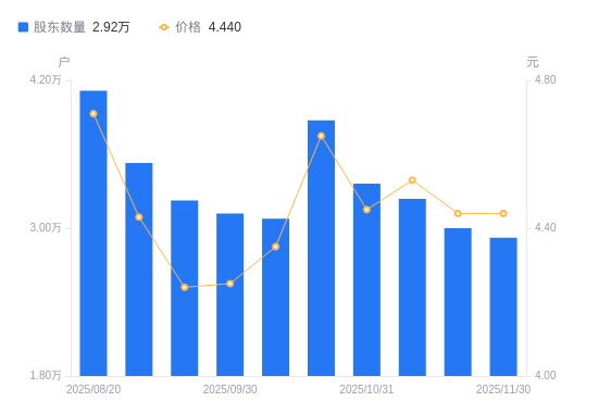 近一年(2024年12月31日至2025年11月20日),文科股份A股股东户数从2.03万户,增加至3万户,增幅47.75%,区间股价上涨26.86%。