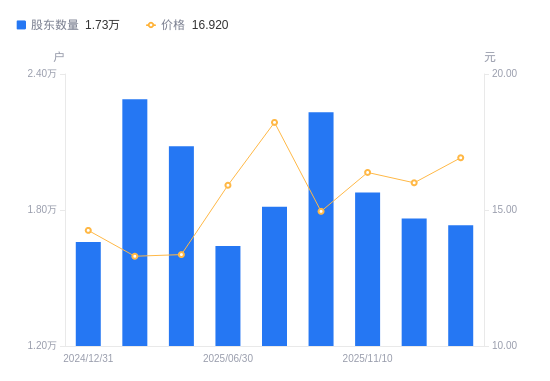 近一年(2024年12月31日至2025年11月20日),横店影视A股股东户数从1.66万户,增加至1.76万户,增幅6.21%,区间股价上涨8.70%。