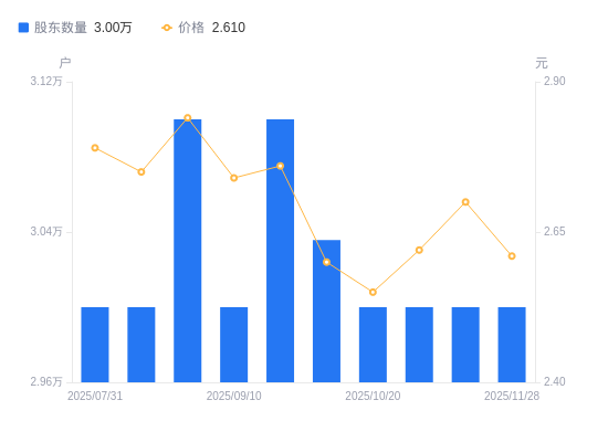 近一年(2024年10月31日至2025年10月31日),兴源环境A股股东户数从3.2万户,减低至3万户,降幅6.25%,区间股价上涨0.38%。