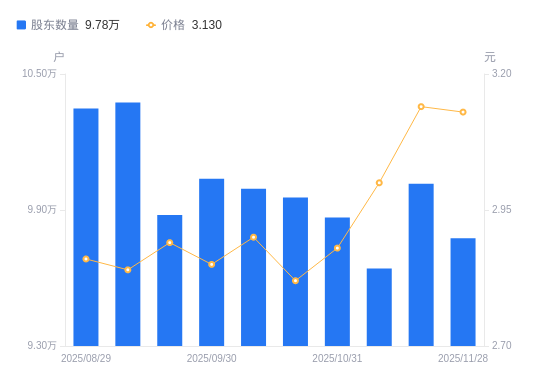 近一年(2024年11月29日至2025年11月28日),神州高铁A股股东户数从9.18万户,增加至9.78万户,增幅6.47%,区间股价上涨25.20%。