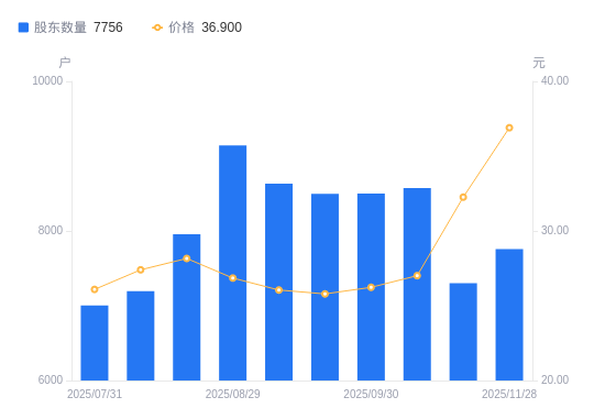 近一年(2024年11月20日至2025年11月20日),侨源股份A股股东户数从3681户,增加至7303户,增幅98.40%,区间股价下跌2.42%。