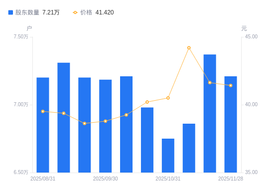 近一年(2024年11月30日至2025年11月28日),九安医疗A股股东户数从7.34万户,减低至7.21万户,降幅1.77%,区间股价下跌3.85%。