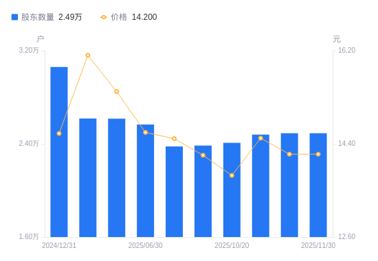 近一年(2024年12月31日至2025年11月28日),乐心医疗A股股东户数从3.06万户,减低至2.49万户,降幅18.61%,区间股价下跌7.98%。