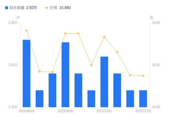 近一年(2024年12月31日至2025年11月28日),光力科技A股股东户数从2.05万户,增加至2.5万户,增幅22.15%,区间股价上涨17.92%。