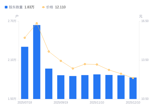 近一年(2024年12月31日至2025年12月10日),新天地A股股东户数从1.4万户,增加至1.83万户,增幅31.06%,区间股价上涨22.77%。
