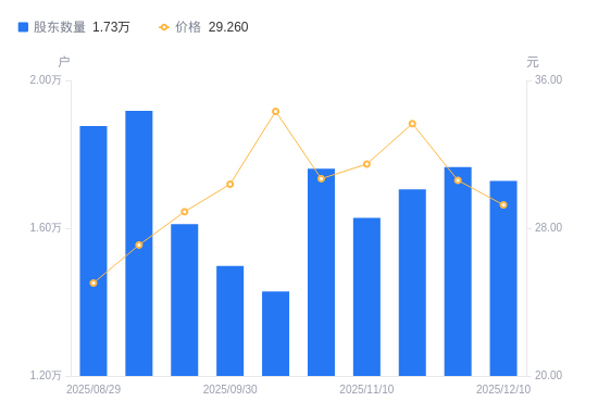 近一年(2024年12月10日至2025年12月10日),依依股份A股股东户数从1.72万户,增加至1.73万户,增幅0.62%,区间股价上涨80.36%。
