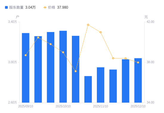 近一年(2024年12月10日至2025年12月10日),视源股份A股股东户数从3.01万户,增加至3.04万户,增幅0.97%,区间股价下跌3.46%。